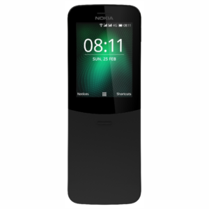 Dual-sim-modellen til Nokia 8110 4G-telefonen har et buet stødsikkert kabinet, der gør telefonen ens i form til en banan. Fås i to farver: sort og gul. Øverst i sagen er der en 2,4-tommers skærm, over den er en kraftig højttaler. Tastaturknapperne er baggrundsbelyst og beskyttet af et flip-cover. Det indbyggede kamera med en opløsning på 2 megapixel og LED-blitz giver dig mulighed for at tage enkle fotos. Understøtter Wi-Fi og Bluetooth. Batteriet giver 7 timers taletid.