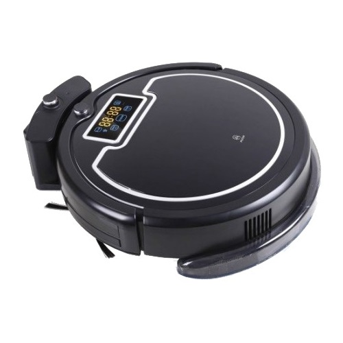 En god model af en robotstøvsuger med både tør- og vådrensningsfunktioner. På forhånd kan du indstille en beregning af rengøringstiden eller en timer, der styres ved hjælp af fjernbetjeningen.