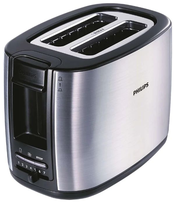 Den billigste hjemmebrødrister Philips HD2581 fås i to farver: sort og hvid. Den har en mekanisk kontrol og er i stand til at riste to toast på samme tid. Brødristerens optimale effekt (900 W) giver dig mulighed for hurtigt at skåle brød. Der er otte niveauer for at justere bruningsniveauet, justeringen er jævn. Enheden er desuden udstyret med en aftagelig krummebakke og en grill til opvarmning af boller.