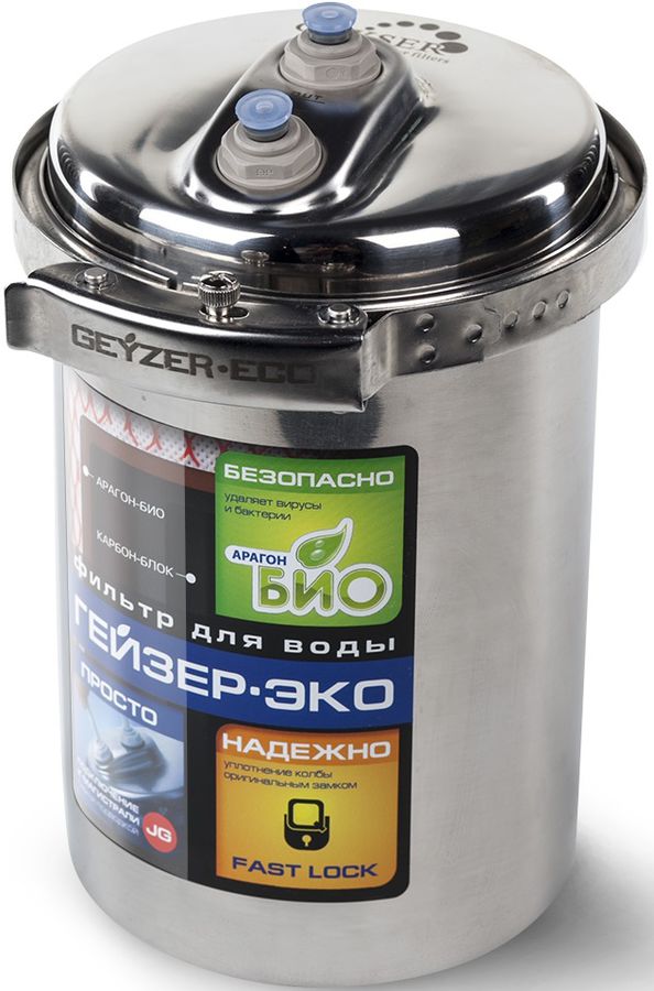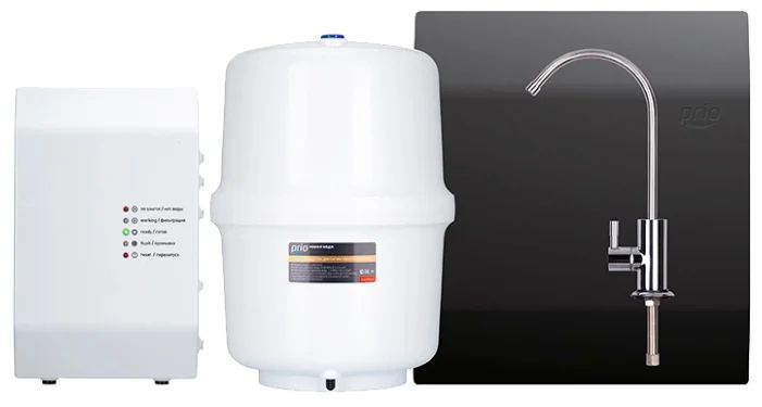 Et godt filter til koldt vand, der forbinder direkte til vandforsyningen. Sættet inkluderer et separat tryk og et filtermodul. Enheden leverer op til to liter i minuttet, men forbrugsvarer er kun nok til 6000 liter. Der er en funktion til rengøring fra klor og jern, og i alt er der 4 trin med rengøring med separate patroner. Indgangstrykket kan nå 45 atm. Og vandets porøsitet er 5 mikron.