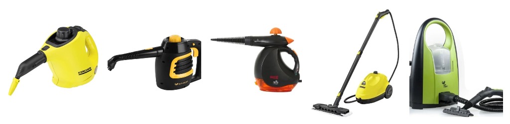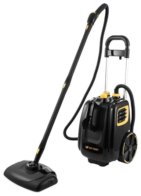 - Gulvstående damprenser - kraftfuld (1500 - 2300 W) enhed til rengøring af store områder. En vandtank med et volumen på op til 3 liter muliggør kontinuerlig drift i 60 minutter. Enheden, svarende til en støvsuger, bevæger sig på hjul; kun en slange med en dyse holdes i hænderne.
