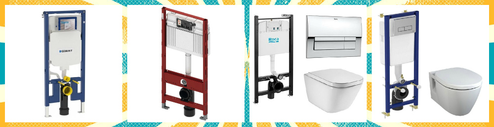 Indrammet. De er fastgjort til væggen og på gulvet. Hovedbelastningen er på de justerbare ben. Med deres hjælp bestemmes toiletens højde. Som regel kan den ændres inden for 20 cm. Denne struktur er ikke kun fastgjort til den bærende væg, men også til gipsvæg.