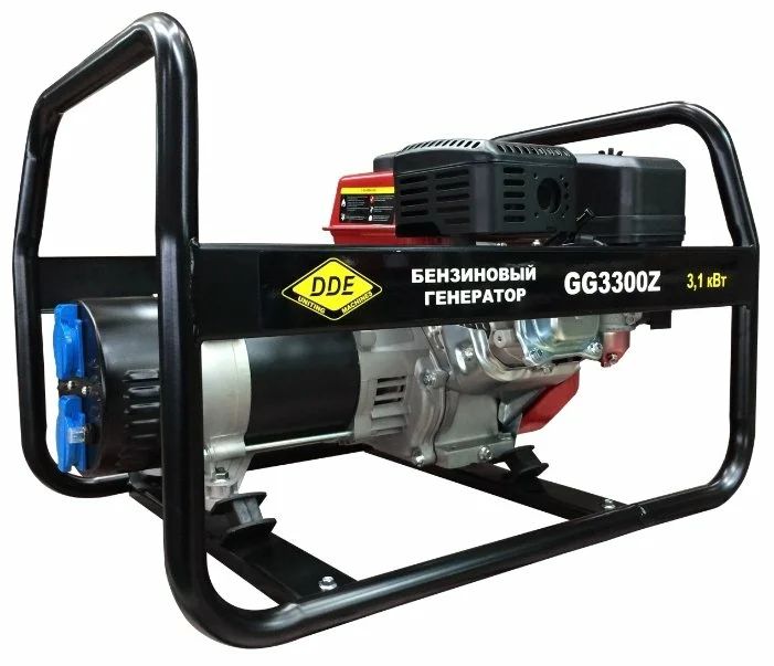 Den billigste benzingenerator til 3 kW. Ifølge ejerne afgiver den den deklarerede effekt: den er i stand til selv at give svejsemaskinen energi. Kontrolpanelet er udstyret med et mekanisk voltmeter til nem visuel kontrol af spændingen. Karakteristika indikerer tilstedeværelsen af en lyddæmper, men enheden er stadig støjende - 94 dB. Ejerne påpeger, at enheden ved lave belastninger fungerer i ca. 10-15 timer. Enheden samles i Kina - du skal inspicere den i butikken, du kan løbe ind i en defekt model.