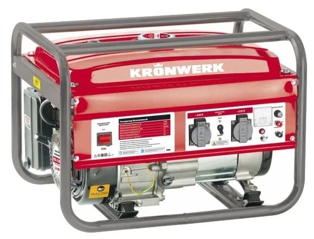 Gasgenerator 2-2,8 kW. Kompakt model, der vejer 39 kg. Det har dog ikke hjul til bevægelse, derfor er det ubelejligt for transport. Arbejder uden afbrydelse i 12 timer. Støjniveauet er lavt, kun 67 dB. Den maksimale effekt er 2,8 kW og den nominelle 2,5 kW. Det går ikke i stykker, hvis brugeren ikke slukker for det, når brændstofniveauet falder - i tilfælde af en kritisk værdi slukkes udstyret automatisk. Der er tre stikkontakter på sagen: to til 220 volt og en til 12V udstyret med skjolde for at beskytte mod fugtindtrængning. Brændstofforbruget er lavt, 1,25 l / h. Nogle ejere klager over en svag motorophæng.
