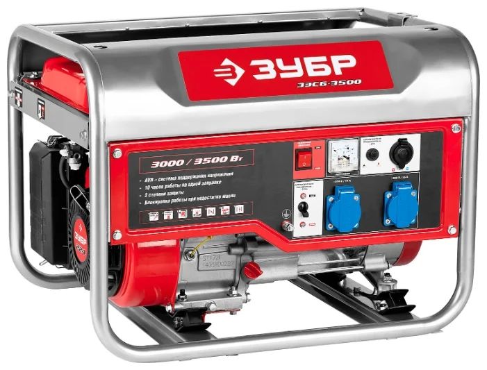 Ratingen på 3 kW benzingeneratorer åbnes af Zubr ZESB-3500-modellen. Massiv, vejer over 47 kg uden brændstof. Købere klager over, at producenten snyder ved at angive 5 år i sagen: garantiperioden overstiger ikke 12 måneder. Det komplette sæt er rigt: der er nøgler, et sæt understøtninger og et kabel med terminaler til genopladning af bilbatteriet. Overbelastningsbeskyttelse leveres, udstyret fungerer glat i lang tid. Den maksimale effekt er 3,5 kW, men der er også et ubehageligt øjeblik med en sådan styrke - støj er betydelig. Motordesignet ligner modellerne fra Honda - fungerer i 7,5 timer uden afbrydelse.